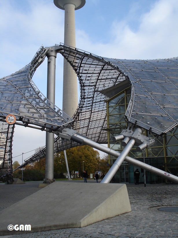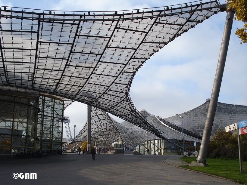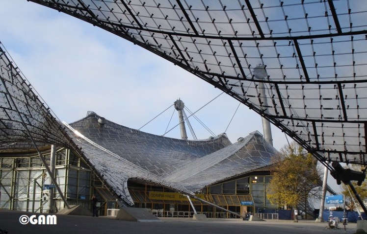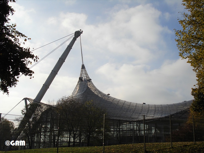 其實慕尼黑還有幾個很驚人的帳篷, 尤其是1972年夏季奧林匹克運動會的體育場頂蓋, 以頗具革命性的帳篷式屋頂結構聞名。它的建築設計師弗萊·奧圖 (Frei Otto) 專門從事輕量的抗拉式結構,為結構數學與民用工程開拓出新的一頁。早年時他在柏林工業大學修讀建築學, 卻在二戰時期被納粹空軍徵入,擔任戰鬥機飛行員。後來他遭到俘虜,被拘禁於戰俘營。此期間的奧圖與一位航空工程師學藝,但他們缺乏材料與急需住處,因此他們建了一個帳篷作為臨時住宿。
