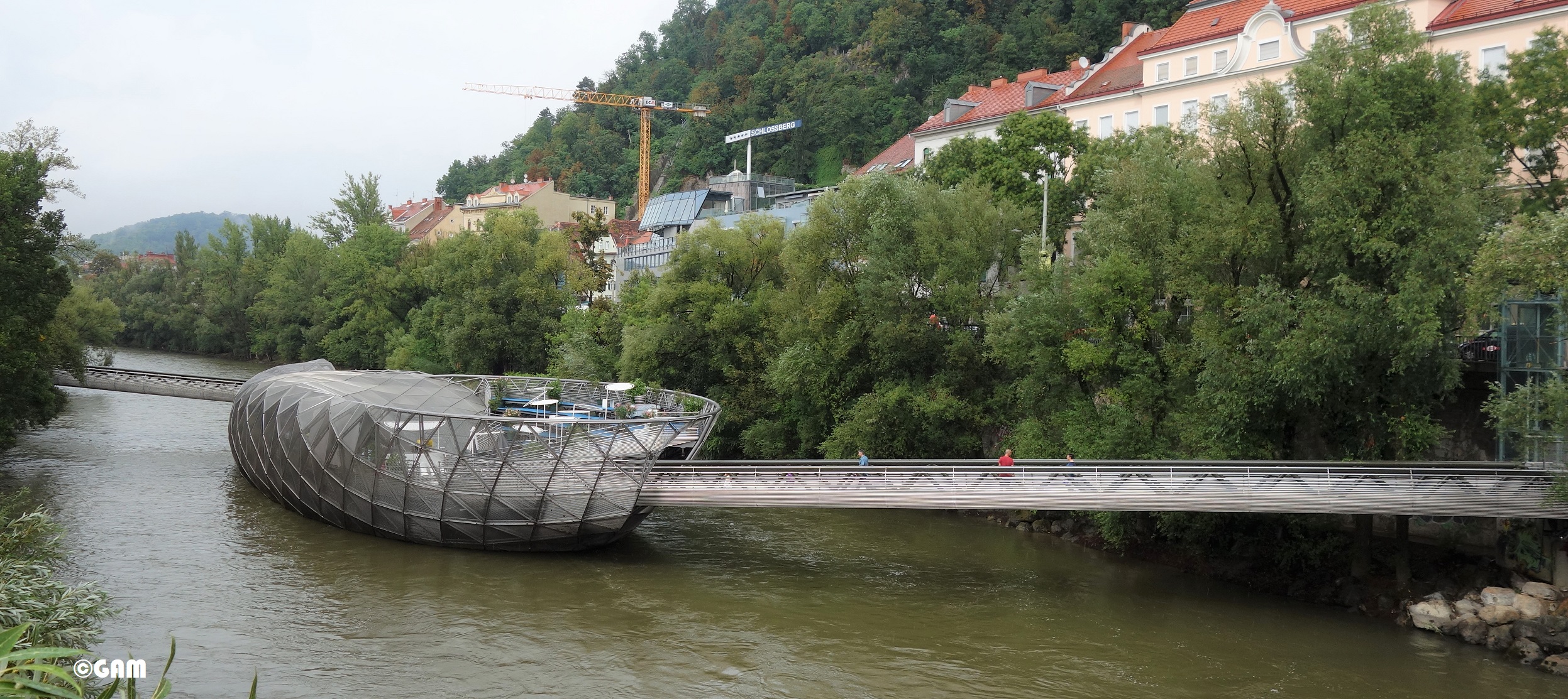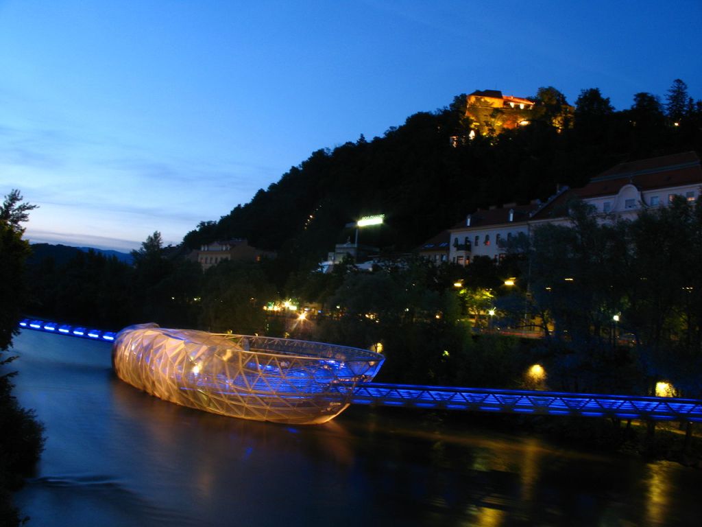 In Austria, I would think that the beauty of yin and yang is actually a bridge that has existed for a short time in central Graz, called Graz Murinsel. This landmark is an artificial floating platform in the Mur River. It was designed in 1999, built in 2002, and was officially opened in January 2003. It served as a second modern landmark next to Schloßberg during the city’s year as European Capital of Culture (2003), complemented by the nearby Kunsthaus Graz. The goal of the project operator is to combine the architecture and art of the public space with the water experience of the city centre.