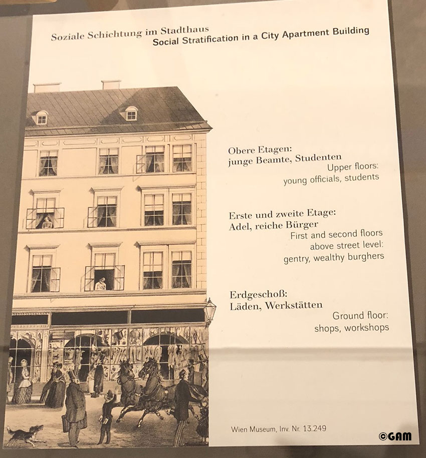 18世紀時在城市的公寓是有社會階級的分別。底樓都是商店或工作室,1樓及2樓住著貴族和富有的人。在這上面幾層住的是年輕公務員及學生。頂樓因為當時沒有電梯不方便,通常都是很窮的人住的,所以剛開始貝多芬到維也那時就是住在那裡。之後因為有王公貴族的經濟支援讓他可以搬到1樓去住。