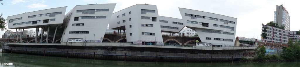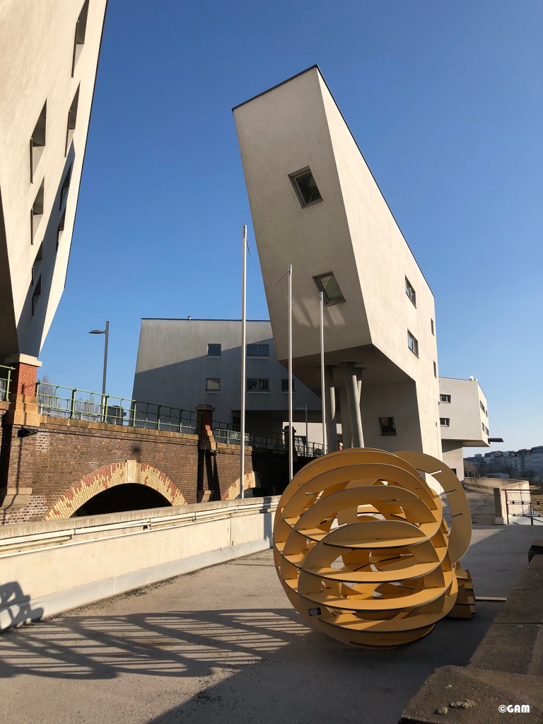 Zaha Hadid was the first female architect to win the Pritzker Architecture Prize, in 2004. Before the award, she was commissioned to design a housing complex in Vienna. The base is located in the ring belt of Vienna. The traffic conditions nearby are multi-level and complicated – a feng shui nightmare. Boats on the Danube Canal (Donaukanal), cars and trucks speeding along an extremely busy highway, passenger and goods trains screeching by just below, and even cyclists and pedestrians on the bicycle path and walkways along the embankment. Add to all this the famous Hundertwasser waste incinerator right next door, and we have a fascinating scene; but for residential use there is simply too much going on. The even more difficult part is that the project had to be integrated into a protected viaduct designed by the Austrian architect Otto Wagner.