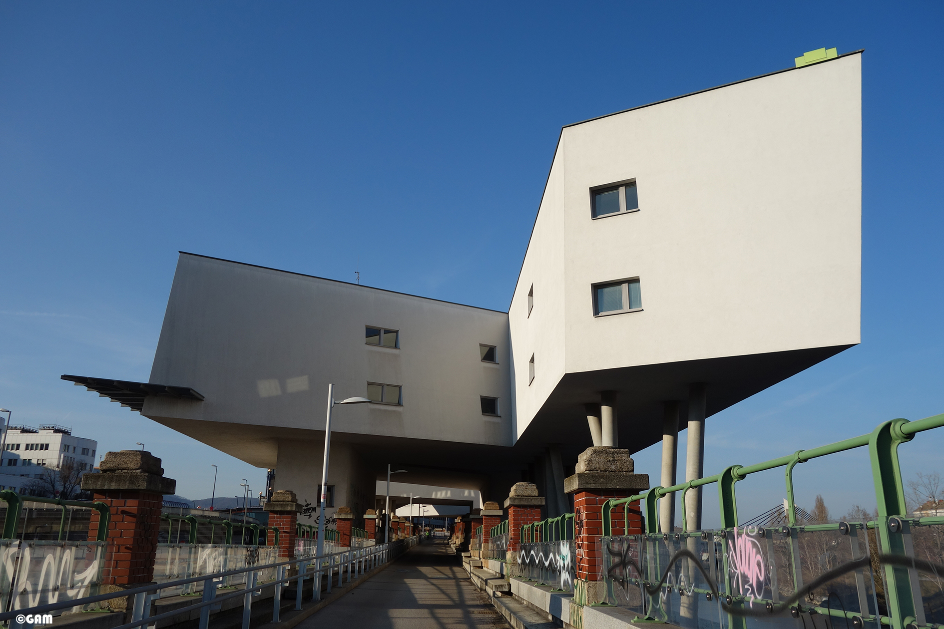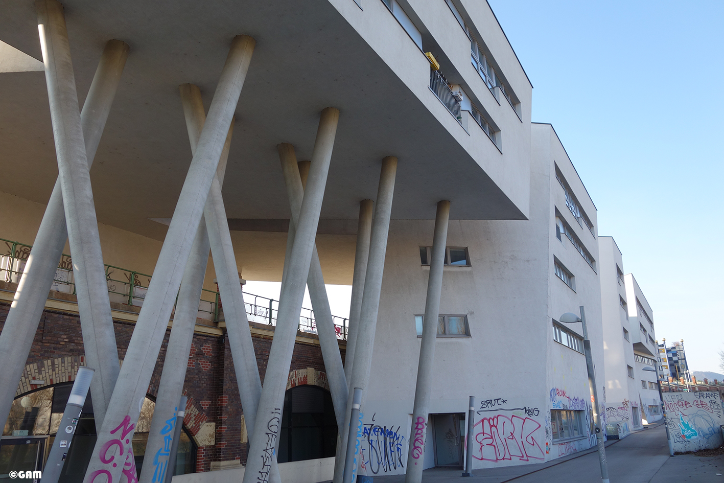My architecture professor Christian Kühn said in an interview to a newspaper that this plan was a “suicide project” and the developers’ plan failed. Even the Salzburger Nachrichten newspaper reported that these buildings are beautiful corpses. At the beginning of 2019, I passed by here and saw graffiti everywhere on the facade, which really shocked me. How did the work of a master architect end up like this?