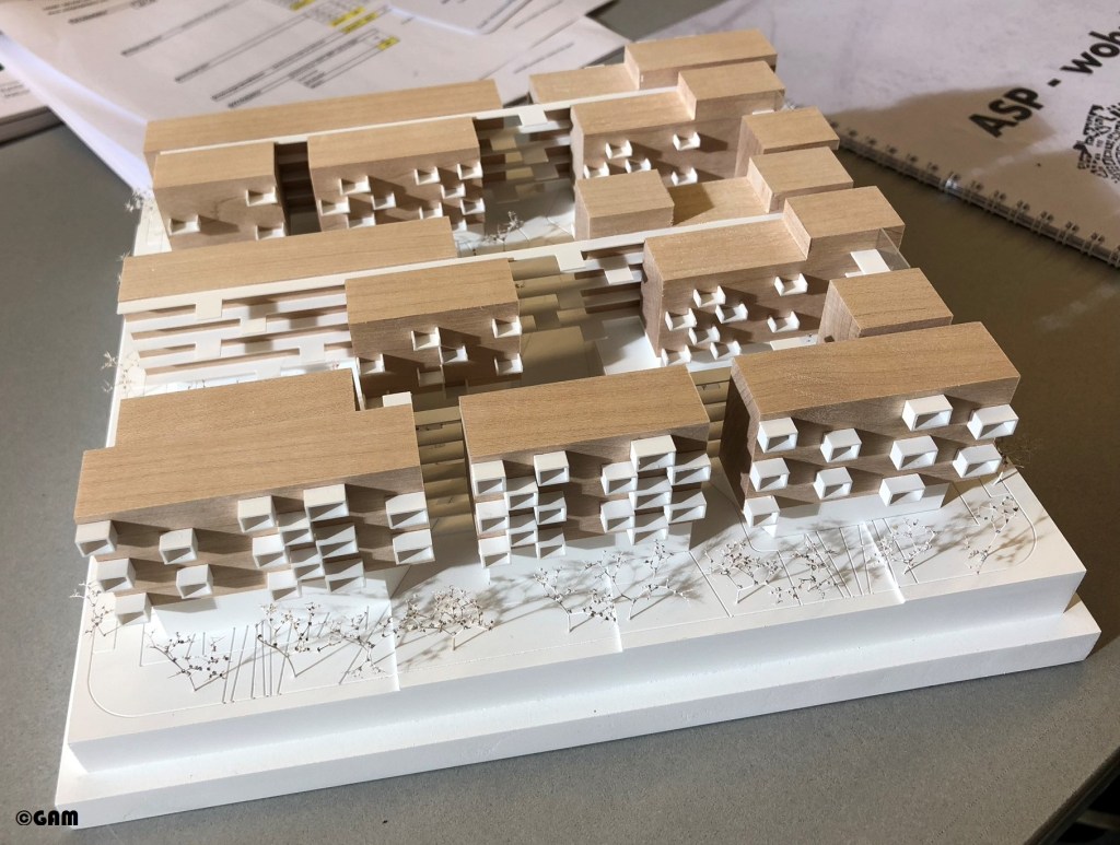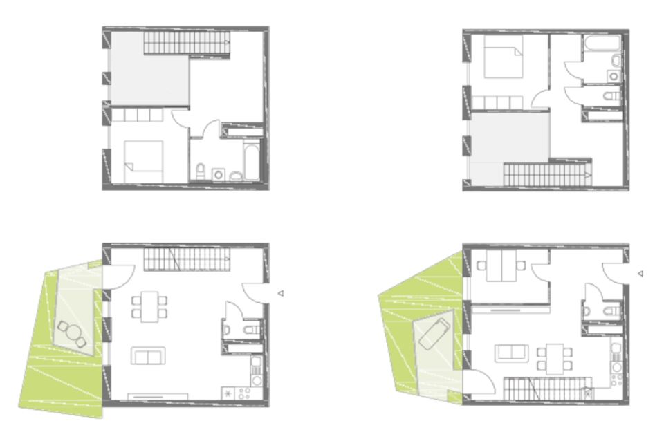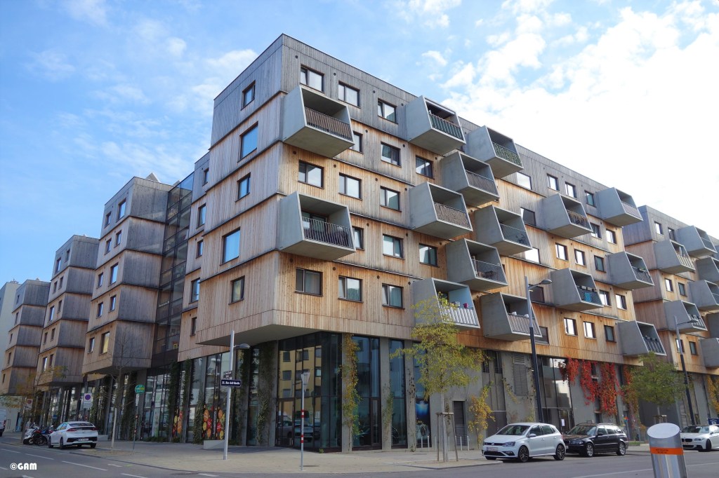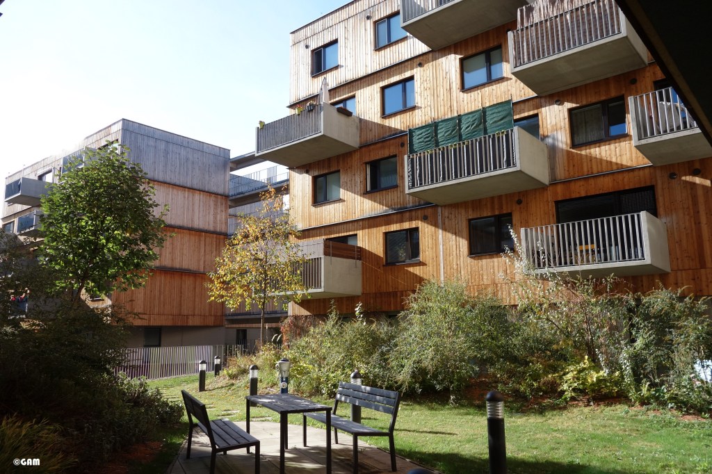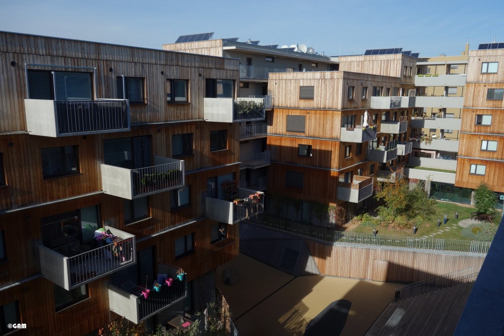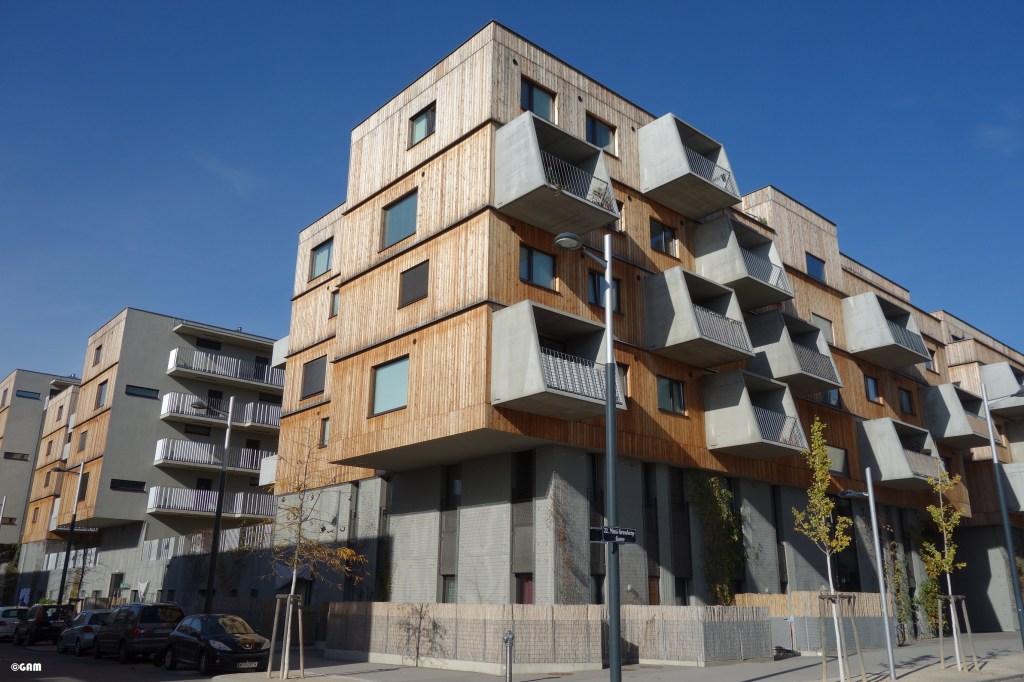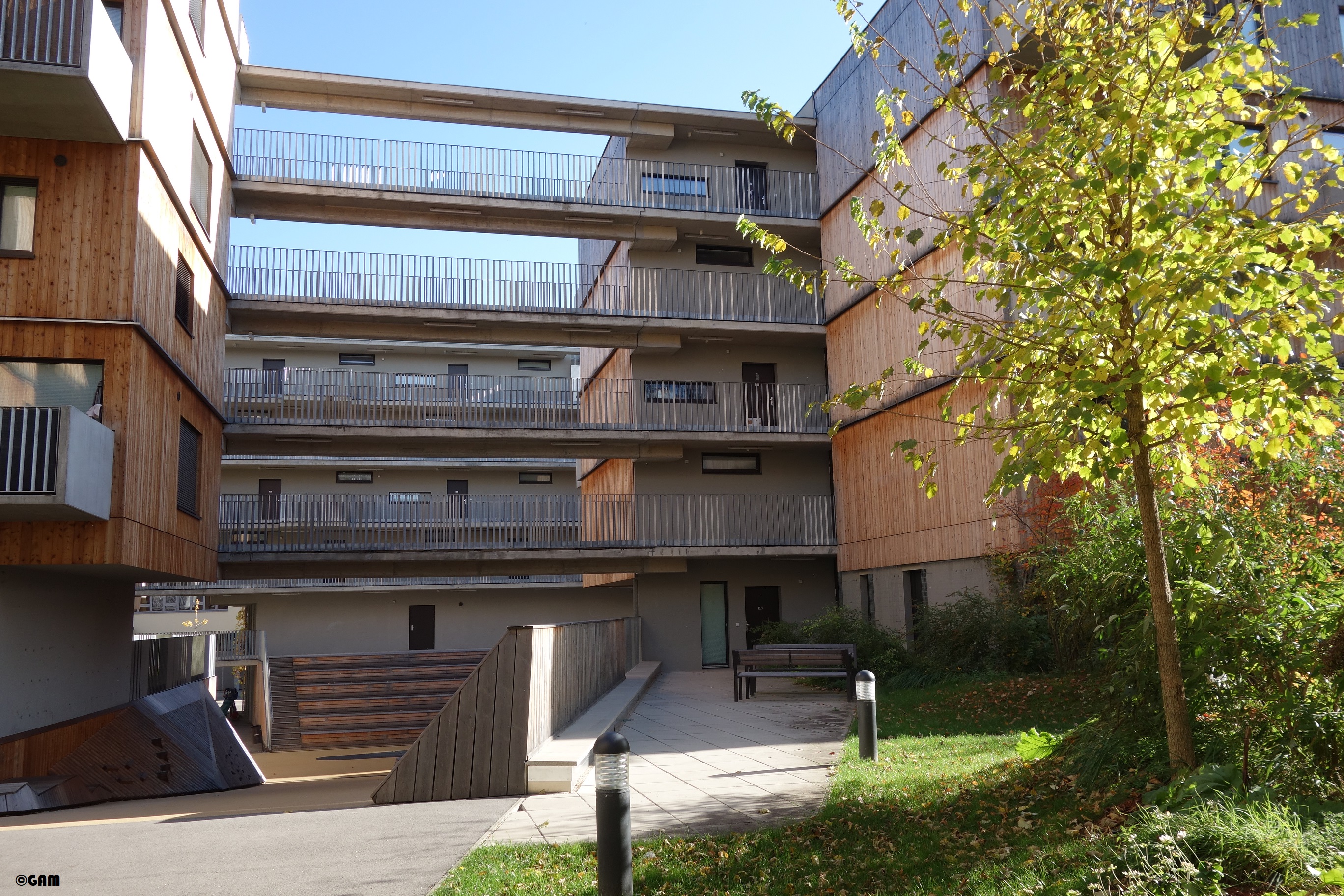 中庭綠化營造出小型氣候能冬暖夏涼,峽谷式公共空間設計結合兒童遊樂區,景觀穿梭不同的空間。住宅設計上是複合式住宅加上底樓的小型工作室,讓自由工作者能在那新社區開始小型事業基礎。彈性的空間使用是他們建築設計的重點之一。每個入口和樓梯間建築師挑選不同的勒·柯比意Le Corbusier多樣性色板。
