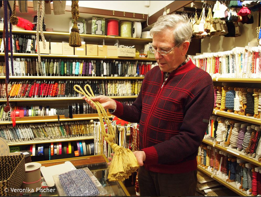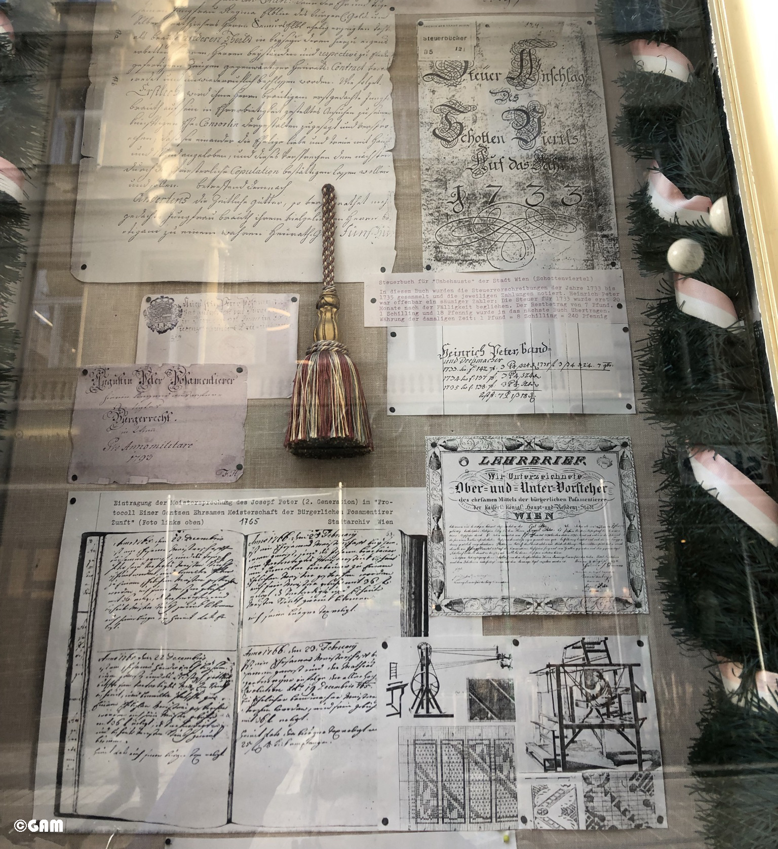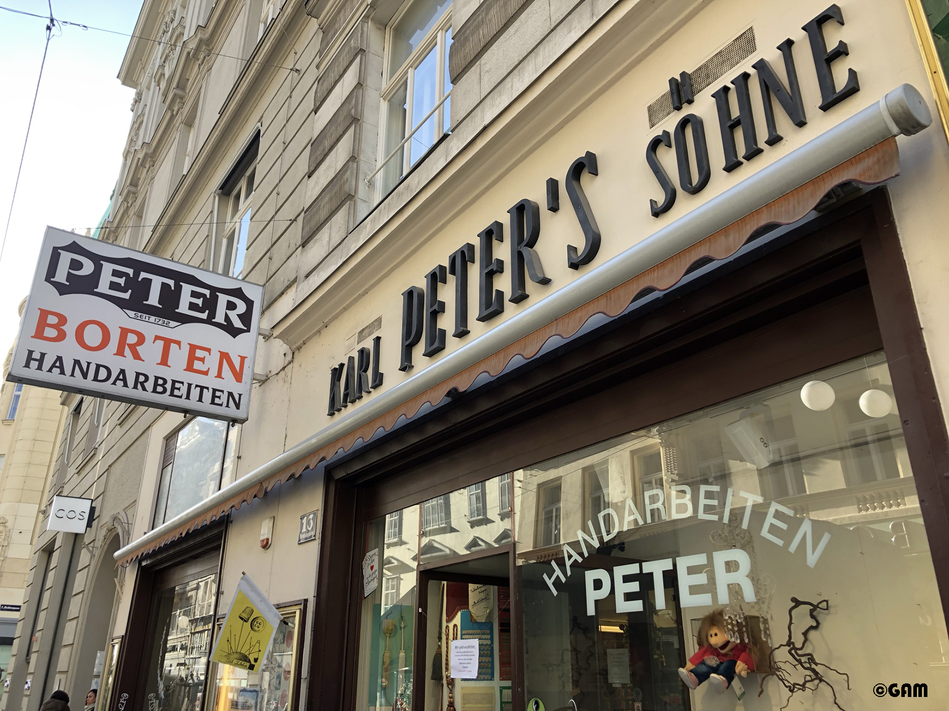 這一家從外觀看來不太起眼的商店自1732年開業到今天,歷經過瑪麗亞泰瑞莎女皇的時代,已經是家族第八代接手了。他們專門從事手工刺繡和以手工生產為主的產品,多種繩索和裝潢的物件。以前最大的客戶是軍隊,因為做軍服需要很多用繩索做的配件。櫥窗中還看到以前他們手工製作繩索的圖畫。傳統手工的配件隨著時間慢慢不再有大的需求,令人驚訝的是這幾年來銷售計劃的最新擴展是音樂盒系列,無數懷舊的朋友,在這個小而美妙的音樂世界裡,心跳加速。