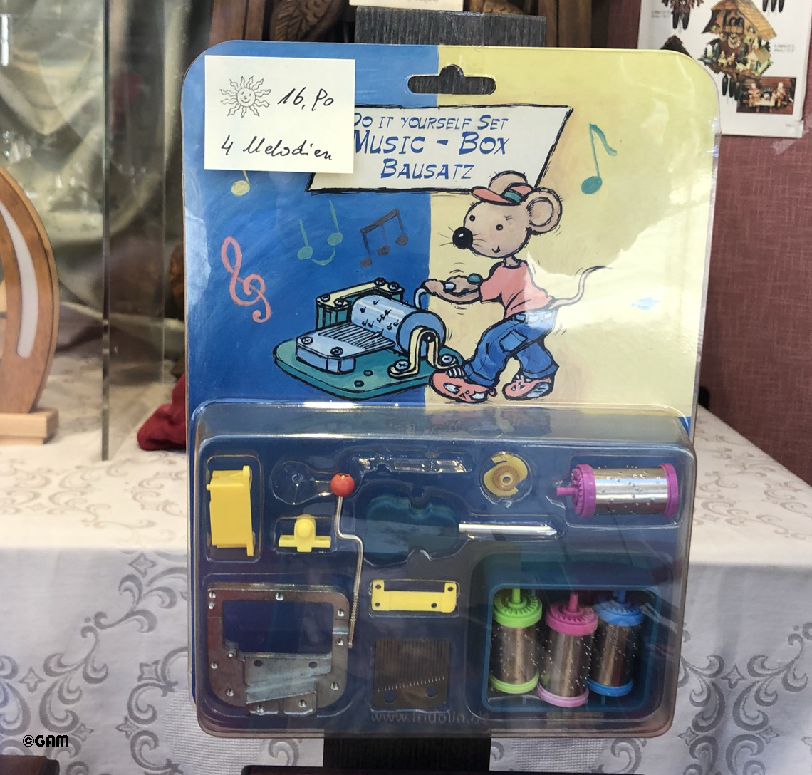 真正吸引我的是2種小音樂盒。一種可以自己DIY拼裝的音樂盒,而且可以換四種不同的音樂,CP 值超棒。17歐元的伴手禮,大人小孩都適合。此外,可以用更大的音箱讓聲音變大喔! (我們使用沙河蛋糕的木盒子當音箱,呵呵) 。