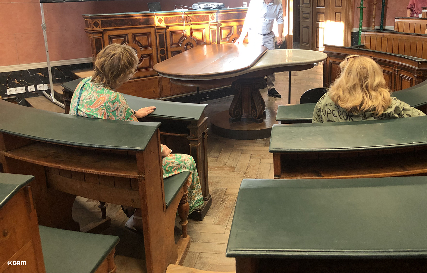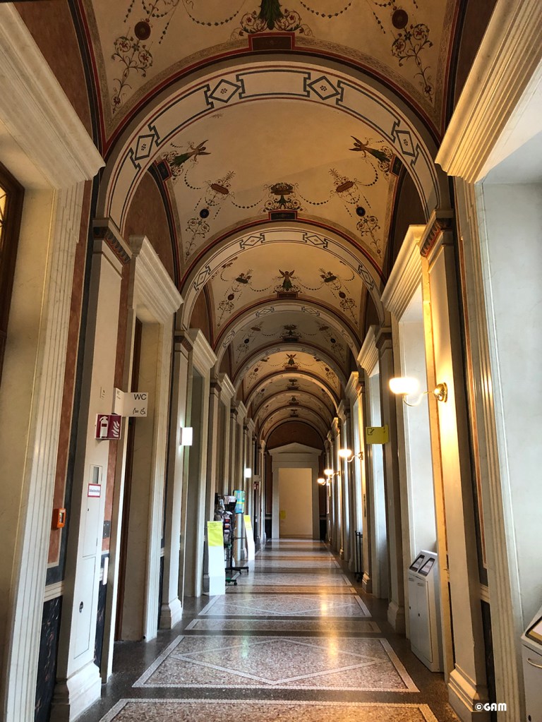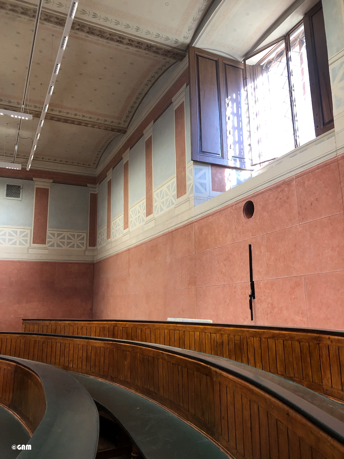 既然在這個義大利風格的講堂中就和大家分享個有趣的幕後花絮吧! 整修工程時有大量的工人在工地施工,他們把解剖室取了一個別名叫披薩店,因為中午時他們都來這裡午休坐著吃午餐 (這些人真的是沒有忌諱) 。