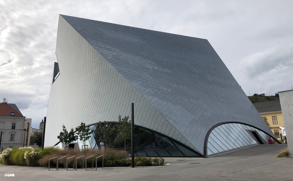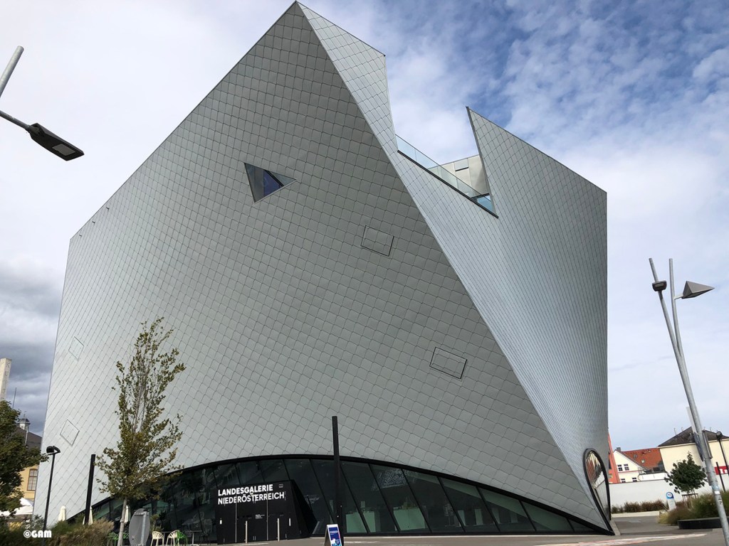 我來到風景如畫的克雷姆斯(Krems),欣賞2019年落成的下奧地利州美術館 (Landesgalerie Niederösterreich)。這個寬闊,光線充足的空間以極大的敏感性融入城市景觀。建築師兄弟Bernhard & Stefan Marte創造了一個空間的連結。這裡的設計重點是旋轉,連接的兩個動態方向。一個方向通到歷史悠久的市中心,另一個到多瑙河。
